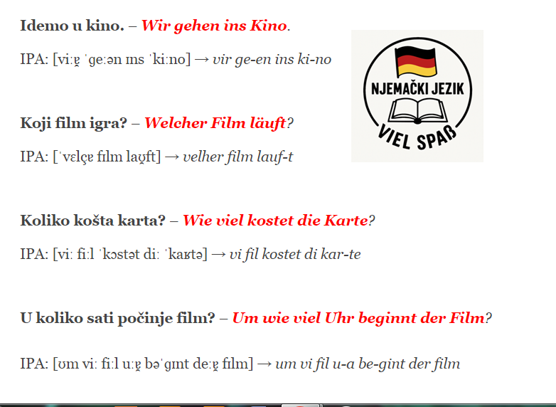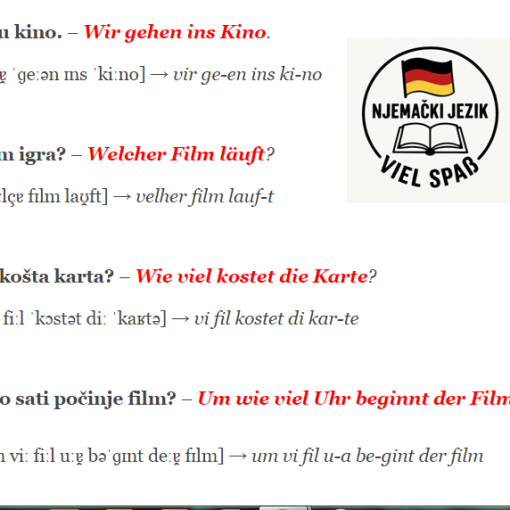 Published 15 Sep 2021 U kinu- Im Kino Idemo u kino. – Wir gehen ins Kino. IPA: [viːɐ̯ ˈɡeːən ɪns ˈkiːno] → vir ge-en ins ki-no Koji film igra? […]