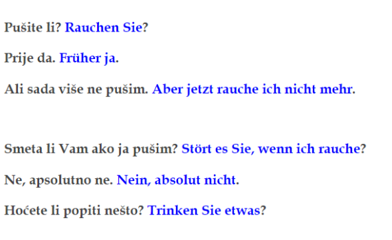 Bok! Hallo! ⌈ ha – loo⌉ Dobar dan! Guten Tag! ⌈ gu-ten ta:g⌉ Kako ste? Wie geht’s? ⌈vi ge:tc⌉ Jeste li vi iz Evrope? Kommen Sie aus Europa? ⌈ ko-men zi aus oy-ro-pa ⌋ Jeste li vi iz Amerike? Kommen Sie aus Amerika? ⌈ ko-men zi aus a-me-ri-ka ⌋ Jeste […]