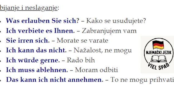 Kada želimo nešto negirati: Nein. – Ne Nein, danke. – Ne, hvala Bestimmt nicht. – Sigurno ne Ich nicht. – Ja ne Für mich nicht. – Za mene ne Eigentlich nicht. – Ne baš Nicht so ganz. – Ne baš Ich glaube nicht. – Ne vjerujem Nicht nach Ihrer […]