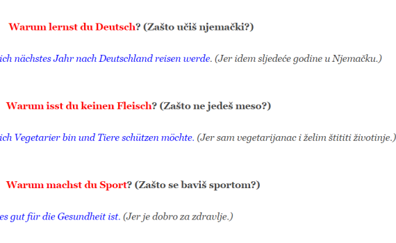 Kako bi izrazili urok i posljedicu, odnosno pitanje Warum? (Zašto?) postavlja se kako bi saznali razlog, a odgovor na pitanje često slijedi sa veznikom weil (jer). Najbolje je to objasniti kroz primjere: Warum lernst du Deutsch? (Zašto učiš njemački?) Weil ich nächstes Jahr nach Deutschland reisen werde. (Jer idem […]