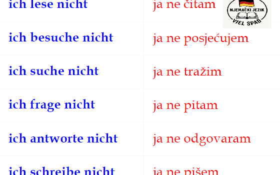 ich bin nicht ja nisam ich habe nicht ja nemam ich kann nicht ja ne mogu ich möchte nicht ja ne želim ich muss nicht ja ne moram ich weiß nicht ja ne znam ich sehe nicht ja ne vidim ich gehe nicht ja ne idem ich komme nicht ja […]