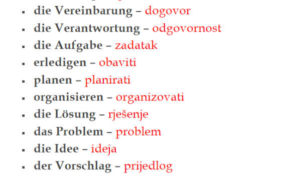 der Alltag – svakodnevica die Erfahrung – iskustvo die Ausbildung – obrazovanje der Beruf – zanimanje die Bewerbung – prijava das Vorstellungsgespräch – intervju die Arbeitsstelle – radno mjesto die Kündigung – otkaz die Karriere – karijera die Weiterbildung – dodatno obrazovanje die Schulbildung – školsko obrazovanje das Zeugnis […]