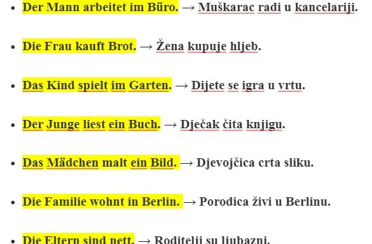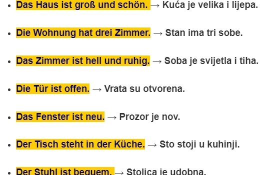 das Haus – kuća die Wohnung – stan das Zimmer – soba die Tür – vrata das Fenster – prozor der Tisch – sto der Stuhl – stolica das Bett – krevet die Lampe – lampa der Schrank – ormar PRIMJERI REČENICA: Das Haus ist groß und schön. […]
