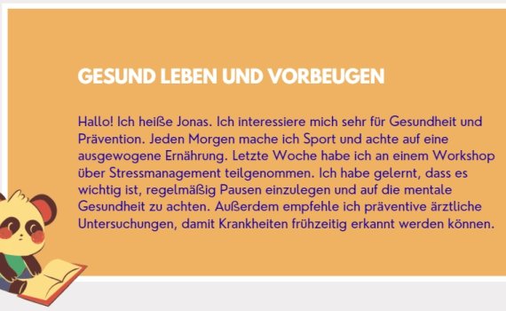 IZGOVOR: PRIJEVOD: Zdrav život i prevencija Zdravo! Zovem se Jonas. Veoma se interesujem za zdravlje i prevenciju. Svako jutro vježbam i pazim na uravnoteženu ishranu. Prošle sedmice sam učestvovao na radionici o upravljanju stresom. Naučio sam da je važno redovno praviti pauze i paziti na mentalno zdravlje. Osim toga, […]