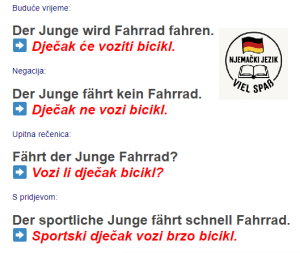 (doslovno: je bicikl vozio – perfekt u njemačkom jeziku se gradi s “sein” za kretanje)