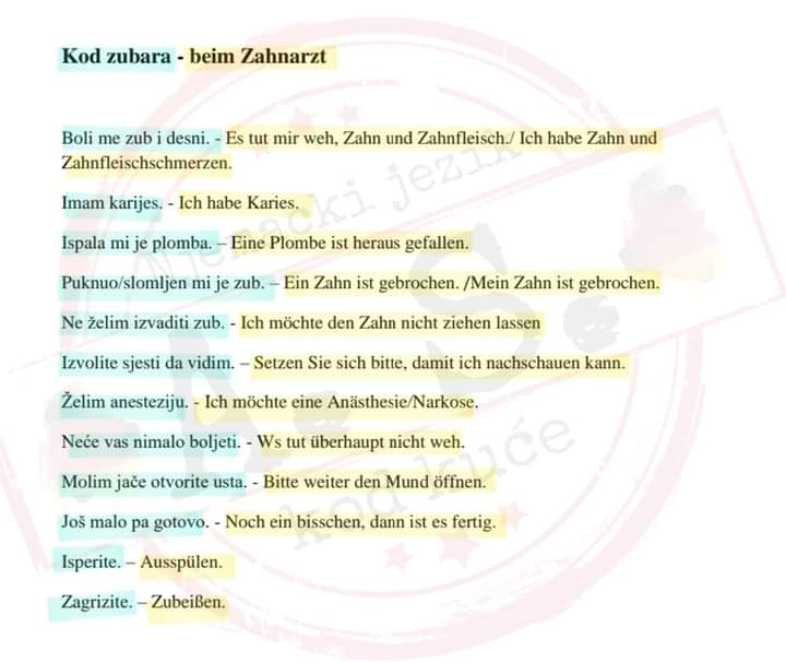 – Smijemo li dobiti jelovnik. Dűrfen wir die Speisekarte haben. – Možemo li platiti odvojeno? Dűrfen wir getrennt zahlen? |