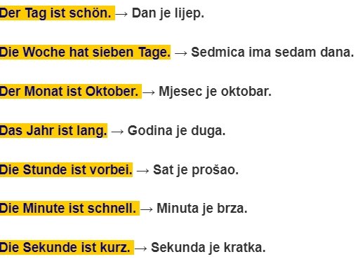 Das Alter ist 30 Jahre. → Starost je 30 godina.