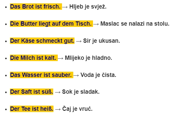 Die Frau kauft Brot. → Žena kupuje hljeb.
